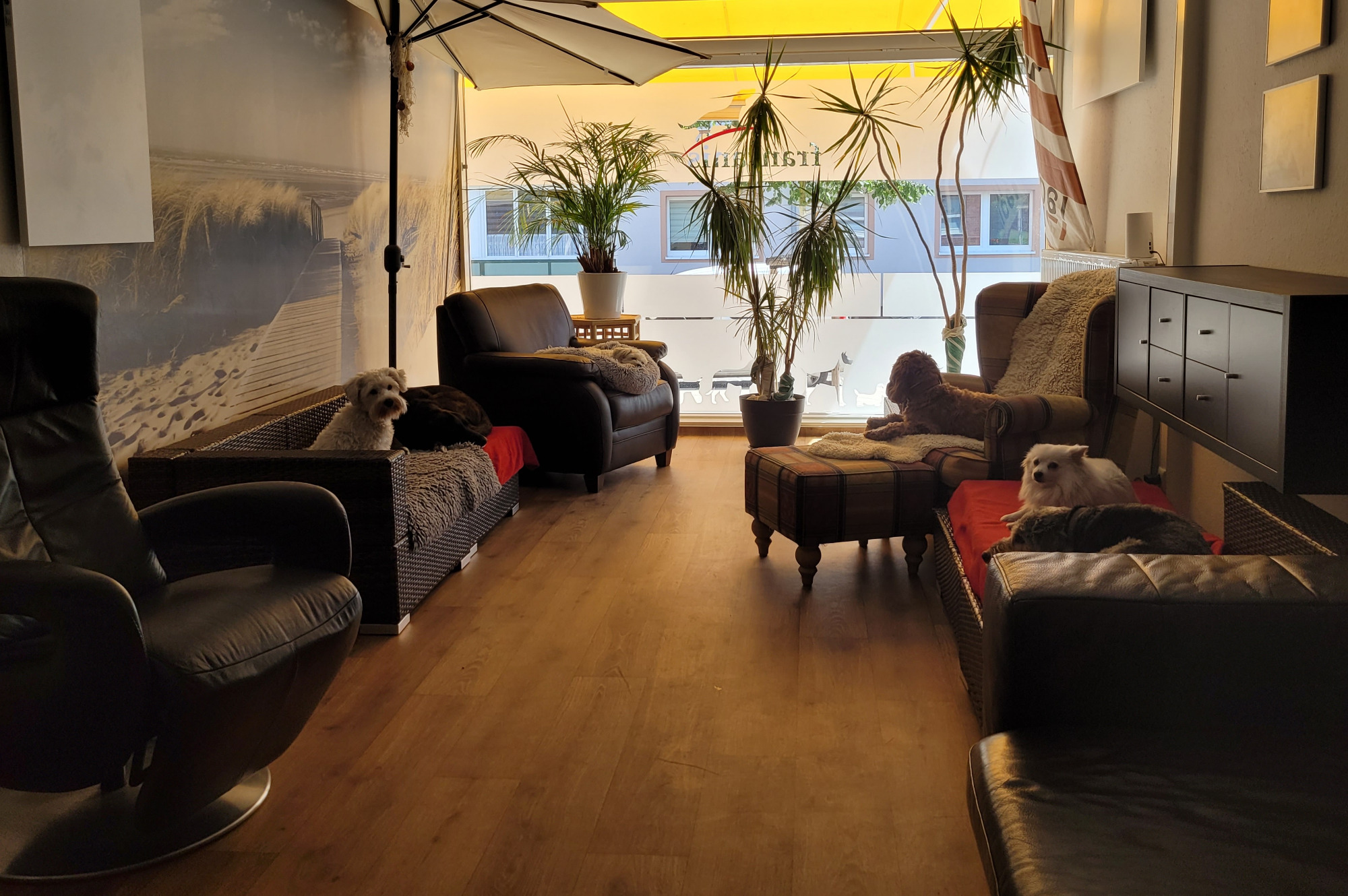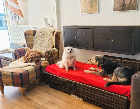 Da wir zu Hause keinen regulären Hundepensionsbetrieb führen, sondern die Gäste in unserem privaten häuslichen Umfeld mit uns und unseren eigenen Hunden wohnen, schlafen und spielen, gelten ein paar individuelle Regeln: